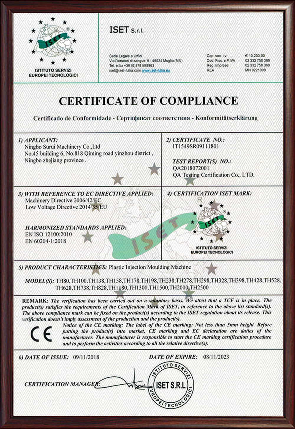 海石牌注塑機(jī)已通過歐盟CE質(zhì)量認(rèn)證