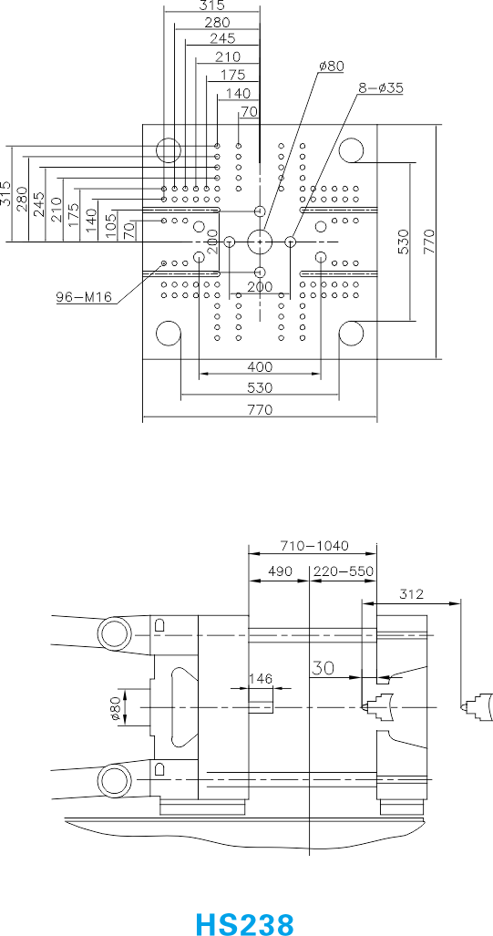 開(kāi)模行程 | Opening stroke | mm | 590 | 720 | 720 | 800 | 860 | 910 | ||||||||||||