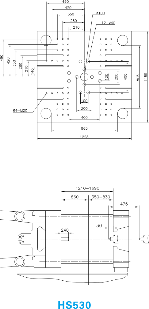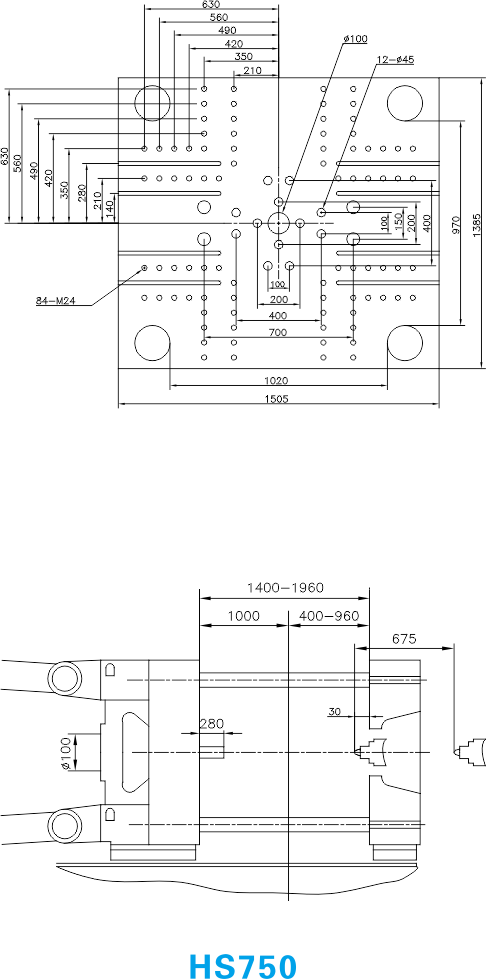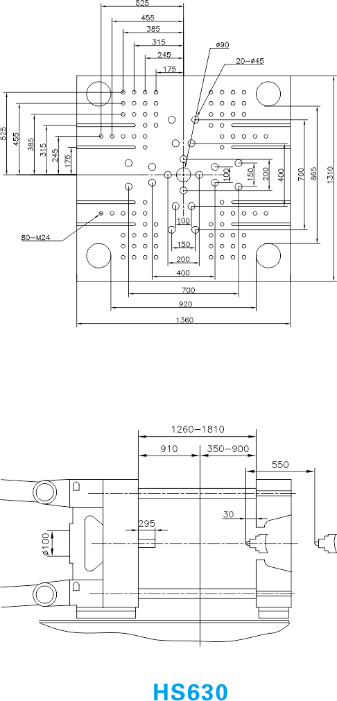 拉桿內(nèi)間距 | Tie-bars distance | mm | 1020x970 | 1125x1085 | 1260x1200 | 1360x1300 | 1620x1480 | 1800x1600 | ||||||||||||||||||
