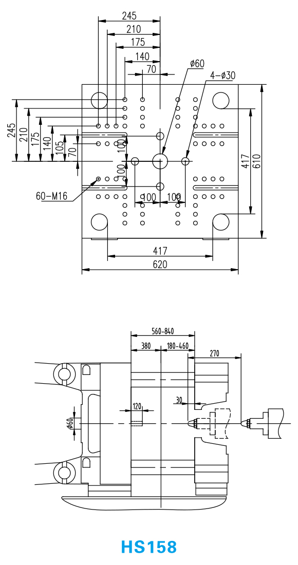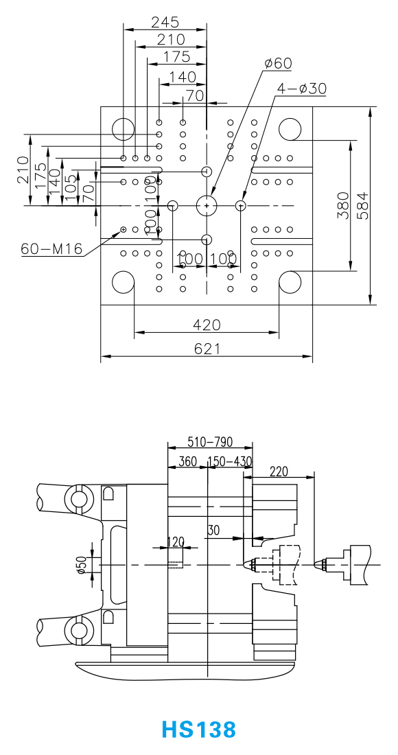 拉桿內(nèi)間距 | Tie-bars distance | mm | 370*370 | 420*380 | 417*417 | 465*465 | 480*480 | 520*520 | 580*580 | ||||||||||||||